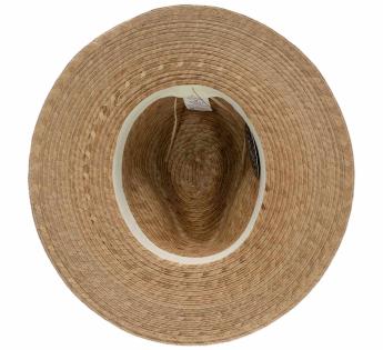 • Naturstroh. Spiralgenähtes Flechtwerk, Krempe an Krempe.