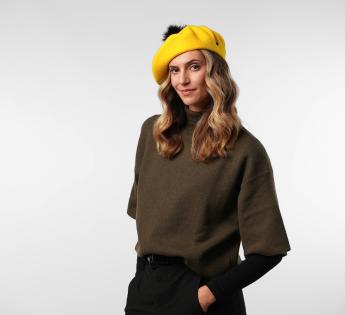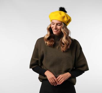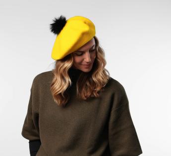 Gefertigt aus reiner Merinowolle, ist diese Französische Baskenmütze mit einem verspielten Pompon verziert, der einem neu interpretierten Klassiker eine Prise Fantasie verleiht. Der tiefschwarze Kunstfell-Pompon kontrastiert mit der lebendigen Farbe des Filzes.