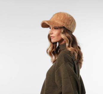 Unerwartet und kühn, diese Baseballcap besticht durch ihr pelzartiges Aussehen, gefertigt aus natürlich weicher und flauschiger Angorawolle. Ihre Haptik ist seidig und das Fell fängt subtil das Licht ein. Ein Modell, das Wärme, Komfort und Originalität vereint, ohne seinen urbanen Charme zu verlieren.