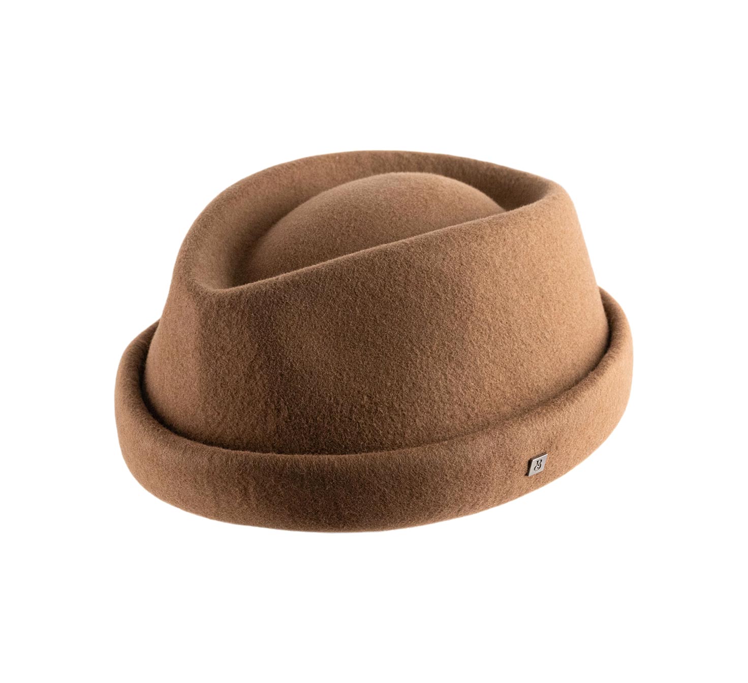 Gefertigt aus Wollfilz, bietet dieses Modell einen stabilen und komfortablen Sitz, mit einer markanten Kopfhöhe und einem breiten, sauberen Revers. Ein handwerkliches Stück, das entworfen wurde, um eine zeitgenössische Silhouette mit Charakter und Präzision zu begleiten.