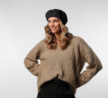 Gefertigt aus reiner Merinowolle, bietet es einen eleganten und bequemen Sitz. Das satinierte Futter kleidet das Innere mit Finesse, während jede Verarbeitung die Aufmerksamkeit für handwerkliches Geschick widerspiegelt. Ein Accessoire mit Charakter, gedacht, um sowohl die schlichtesten als auch die gewagtesten Stile zu veredeln.