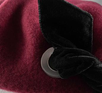 Dieses neu interpretierte Béret spielt mit Kontrasten mit Kühnheit und Raffinesse. Seine baskische Form, mit einem mittleren Schnitt, wird durch ein Duo aus starken Details verdreht: eine handgeflochtene Samtschleife und zwei metallische Ösen, die die Silhouette modernisieren. Ein subtiler Ausgleich zwischen Tradition und Design, gedacht für einen selbstbewusst femininen Look.
