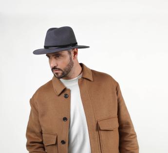 Chapeau traveller aus hochwertigem Filz, das sich insbesondere durch seine Flexibilität und die Weichheit seiner Haptik auszeichnet. Das Modell ist mit einem Wildleder-Effekt durch die Verzierung aus Leder seines bi-materiellen Galons dekoriert. Es wird in einer dezenten Farbe präsentiert, die perfekt für die Saison ist.