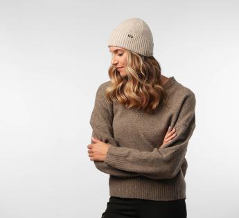 Feine Wollbeanie, einlagig, weich und atmungsaktiv. Ihr Revers passt sich an: mit einem Umschlag wärmt es die Ohren; entfaltet wird es zur Oversize-Beanie; oder hochgerollt verwandelt es sich in eine Dockermütze.