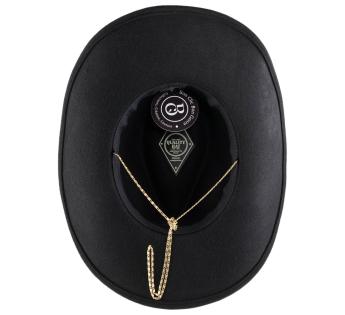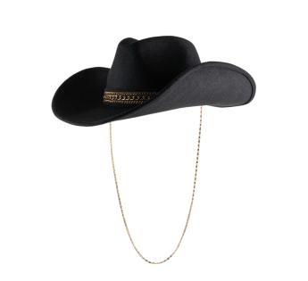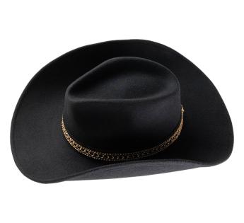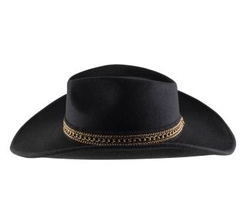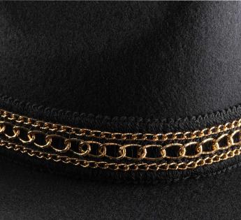 Gefertigt aus Wollfilz, ist er sowohl warm, wasserabweisend als auch langlebig. Der mit goldenen Kettchen verzierte Galon verleiht einen leuchtenden und kontrastreichen Touch, zwischen Klassizismus und Kühnheit. Der feine Kinnriemen im Kettenstil unterstreicht seinen Charakter und ermöglicht einen sichereren Sitz.