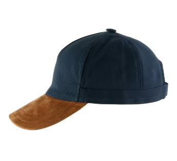 Klassische Snapback mit einer Kopfhöhe aus gestreiftem Denim-Stoff und einer Krempe aus Baumwollsued (Nachahmung eines weichen Leders, das Suede). Ein Kontrast, der ein lässiges Outfit mit seinem zeitlosen Charme aufwerten kann. Das Material ist für die Hitze geeignet und ermöglicht ein einfaches Draußen-Sein.