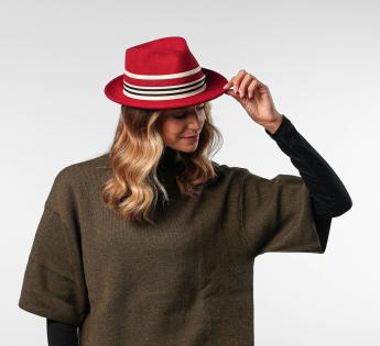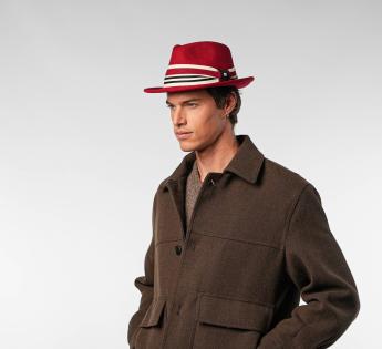 Perfekte Balance zwischen Schlichtheit und Kühnheit, dieser Fedora-Hut mit mittellanger Krempe besticht durch seine dezente Form, die sich leicht im Alltag tragen lässt. Aus leichtem, aber warmem Filz gefertigt, wird er durch einen ultra-grafischen Galon aufgewertet, der strukturiertes Strick, glatten Satin und kontrastierende Endet kombiniert.