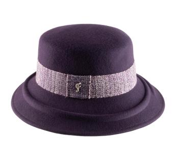 Glockenhut mit einer flachen Kopfhöhe. Sein Rand ist elegant und originell gestaltet und seine Struktur ermöglicht es, damit zu spielen, indem man ihn beispielsweise anhebt. Je nach Stimmung und Wünschen kannst du ihn deinem Look anpassen. Es handelt sich um einen Filzhut, der unvergleichlichen Komfort für alle Ausflüge bietet.