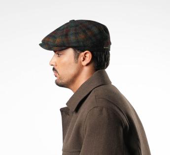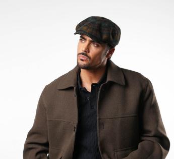 Diese 8-Panel-Cap findet ein schönes Gleichgewicht zwischen britischer Tradition und modernem Flair. Ihre runde und großzügige Form, hervorgehoben durch einen kleinen zentralen Knopf, verleiht ihr eine ikonische Silhouette, die hier in einer strukturierten Wolle mit subtilen Reflexen neu interpretiert wird. Der weiche Stoff zeigt ein dezentes kariertes Muster in einer Palette von tiefen und natürlichen Farbtönen, die sowohl zeitlos als auch zeitgemäß sind.