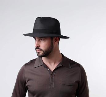 Hut für gentlemen traveller aus flexiblem Filz, weich und bequem, was ihn zu einem perfekt warmen Accessoire für den Winter macht. Er wird schlicht durch ein Band aus Verzierung aus Satin aufgewertet.