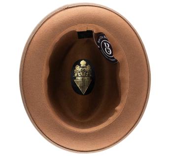 Gefertigt aus natürlich wasserabweisender, gefilzter Wolle, präsentiert dieses Modell klassische Linien, veredelt durch ein raffiniertes schwarzes Band. Seine traditionelle Form, sowohl kühn als auch raffiniert, ist eine Hommage an die europäische Hutmacher-Kunst.