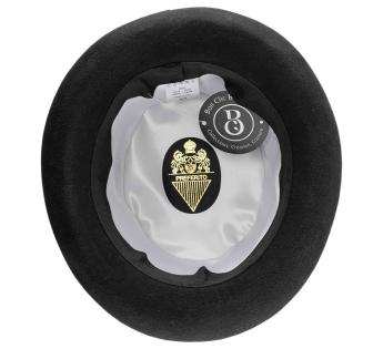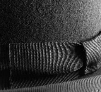 Verziert mit einem dezenten Grosgrain-Galon, spielt er die Karte der Raffinesse ohne Übermaß. Perfekt für Zeremonien, anspruchsvolle Stadtkleidung oder von Dandy inspirierte Silhouetten, überdauert dieser Hut die Epochen mit Adel und Unterscheidung.
