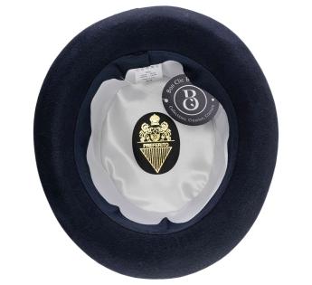 Verziert mit einem dezenten Grosgrain-Galon, spielt er die Karte der Raffinesse ohne Übermaß. Perfekt für Zeremonien, anspruchsvolle Stadtkleidung oder von Dandy inspirierte Silhouetten, überdauert dieser Hut die Epochen mit Adel und Unterscheidung.