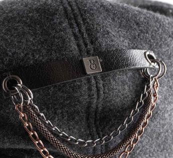 Diese cap bricht kühn mit den Codes. Ihre unkonventionelle Linie, kombiniert mit Verzierung aus Leder und Metallketten, die in unserem Atelier in Lyon hinzugefügt wurden, schafft ein perfektes Gleichgewicht zwischen Rock-Appeal und Raffinesse. Hergestellt in Italien, gewinnt sie dank dieser einzigartigen handwerklichen Arbeit an Charakter.