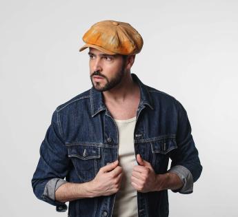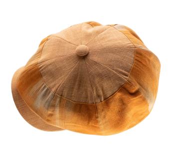 Kappe in orange mit breiten Karos. Eine Konfiguration im Tie-Dye-Stil verleiht ihr ein originelles Aussehen.