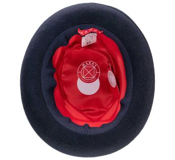 Hergestellt in Frankreich, vereint dieses Modell handwerkliches Können mit einer markanten Ästhetik. Der Kontrast zwischen der bedruckten Kopfhöhe und der dunklen gerollten Krempe betont seinen theatralischen Charakter, während er dennoch elegant tragbar bleibt. Ideal, um seinen Stil zu betonen, ein Outfit zu veredeln oder bei einem Event Eindruck zu machen.