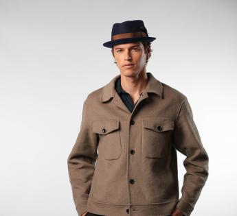 Der PorkPie Hut aus Filz verkörpert die zeitlose Eleganz eines Jazzclubs.