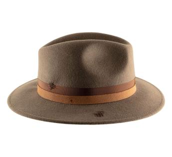 Vollständig aus dichtem und strukturiertem Wollfilz geformt, interpretiert dieses Modell die klassische Form der Travellerhüte durch eine symbolische Ästhetik, inspiriert vom poetischen Universum von Lewis Carroll, neu. Ein alter Schlüssel, anstelle der traditionellen Feder befestigt, wird zum Emblem des Geheimnisses der Zeit, ein direkter Hinweis auf den verrückten Hutmacher aus Alice.