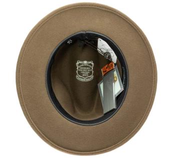 Das Ensemble wird durch einen doppelten, kontrastierenden Galon aus rohem Wildleder und Satinband hervorgehoben. Dieses Spiel der Texturen, zwischen Rauheit und Weichheit, betont die einzigartige Ausstrahlung dieses Hutes mit starkem Charakter.
