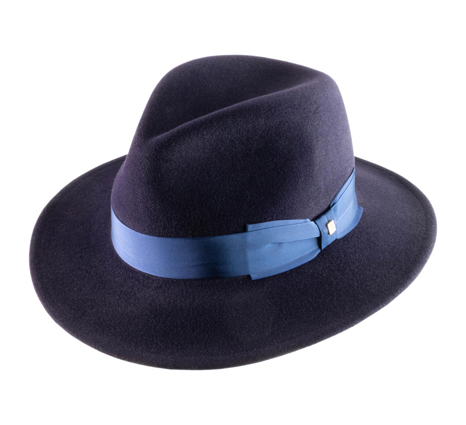 Travellerhüte 100 % französisch. Er wurde in unseren Werkstätten in Lyon aus hochwertigem, seidigem Filz gefertigt. Das Gesamtbild zeichnet sich durch Eleganz und Leichtigkeit aus, während die fächerförmige Kopfhöhe mit einem Satin-Galon verziert ist.