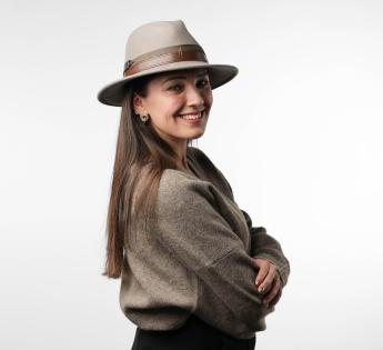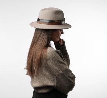 Eine Verbindung von Stil und Charakter, dieser Filzhut zeichnet sich durch seine mehrstrukturierte Lederverzierung aus. Ziernähte, Ton-in-Ton-Stickereien und ein goldenes Label veredeln diesen rohen und eleganten Mix. Wasserabweisend und crushable, begleitet er Sie mühelos, ob in der Stadt oder auf Reisen.