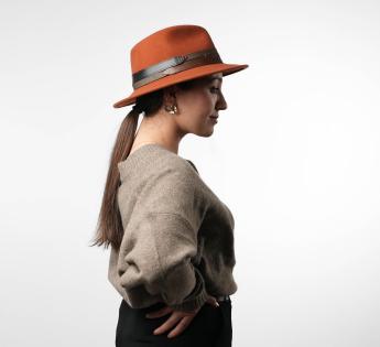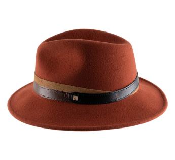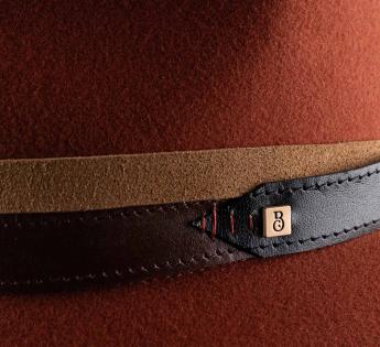 Eine Verbindung von Stil und Charakter, dieser Filzhut zeichnet sich durch seine mehrstrukturierte Lederverzierung aus. Ziernähte, Ton-in-Ton-Stickereien und ein goldenes Label veredeln diesen rohen und eleganten Mix. Wasserabweisend und crushable, begleitet er Sie mühelos, ob in der Stadt oder auf Reisen.