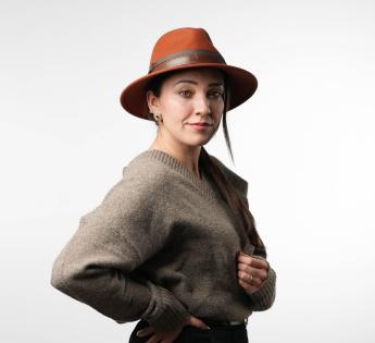 Hergestellt in Lyon in unserer Werkstatt, spiegelt dieses Modell das gesamte Know-how unseres Modisten wider. Jedes Stück wird sorgfältig geformt, unter Beachtung der handwerklichen Techniken. Ein Hut, der für Langlebigkeit gedacht ist, mit einer echten Designer-Unterschrift.
