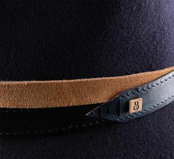 Eine Verbindung von Stil und Charakter, dieser Filzhut zeichnet sich durch seine mehrstrukturierte Lederverzierung aus. Ziernähte, Ton-in-Ton-Stickereien und ein goldenes Label veredeln diesen rohen und eleganten Mix. Wasserabweisend und crushable, begleitet er Sie mühelos, ob in der Stadt oder auf Reisen.