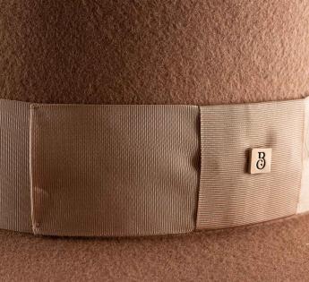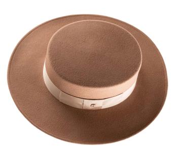Gefertigt in Italien aus hochwertigem Wollfilz, ist er mit einem in Frankreich hergestellten Galon verziert, das Ergebnis einer Partnerschaft zwischen Handwerkern beider Länder. Dieser Dialog des Handwerks bringt ein Stück hervor, das Tradition und Kühnheit vereint, in einem Stil, der sowohl minimalistisch als auch expressiv ist. Ein Hauch von Andalusien, ein Hauch von Couture, dieser Hut überdauert die Epochen, ohne je seine Anziehungskraft zu verlieren.