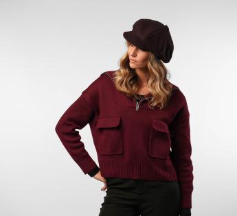 Dieses Béret bewahrt die zeitlose Eleganz des Modells, indem es die Authentizität der französischen Mode feiert. Sie können es auf verschiedene Arten tragen, hinten, seitlich oder sogar nach vorne wie eine Flat cap.