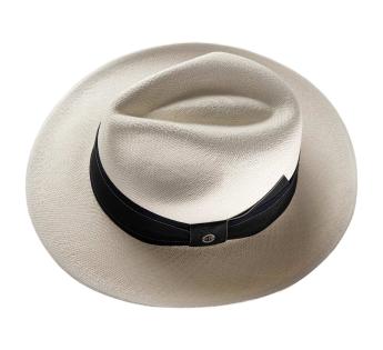 Dieser Panamahüte Montecristi besticht durch sein Grosgrain-Band, raffiniert in zeitlosen Farben, dessen überlagerte Verarbeitung eine subtile Tiefe verleiht. Das asymmetrische Detail, das am Hinterkopf hervortritt, bringt eine moderne Dynamik in diese klassische Silhouette, signiert mit einem gebürsteten silbernen Badge.