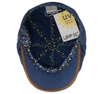 Kappe mit acht Panels ohne Knopf, ohne Futter, sie ist weder wirklich weit noch tailliert. Sie wurde aus robustem Baumwollstoff mit Lederenden an der Krempe gefertigt. Ihr Material ist zudem geeignet, atmungsaktiv und angenehm zu tragen.