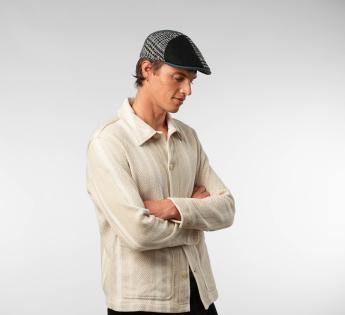 Mit seinem neu interpretierten Prinz von Wales-Muster und den einfarbigen Wollbesätzen zeichnet sich diese Flat cap durch ihren grafischen und modernen Look aus. Die subtil integrierten Farbakzente beleben das Gesamtbild, während der taillierte Schnitt ihr eine elegante Linie verleiht.