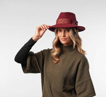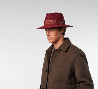 Eine perfekte Verbindung von Eleganz und Charakter, dieser Travellerhüte wird mit großer handwerklicher Sorgfalt in unserer Werkstatt in Lyon gefertigt. Er zeichnet sich durch einen Galon aus, der auf den Farbton des Filzes abgestimmt ist und mit zarten Arabeskenmustern verziert ist. An einigen Stellen leicht glänzend, mit einem subtilen Samteffekt, fängt er das Licht ein und bereichert die Silhouette des Hutes.